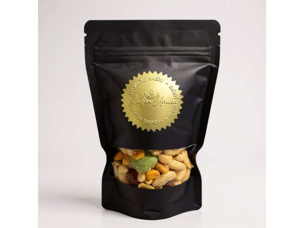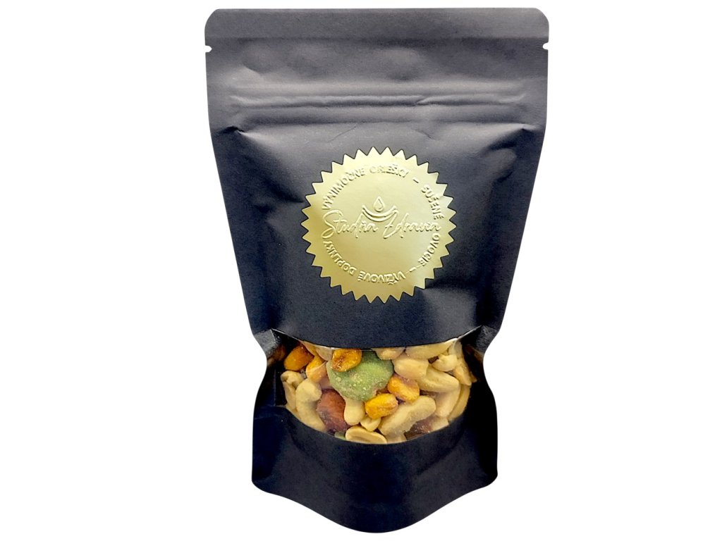 Zmes najchutnejších pražených solených orieškov - nerozlučne patrí k pivu a vínu.